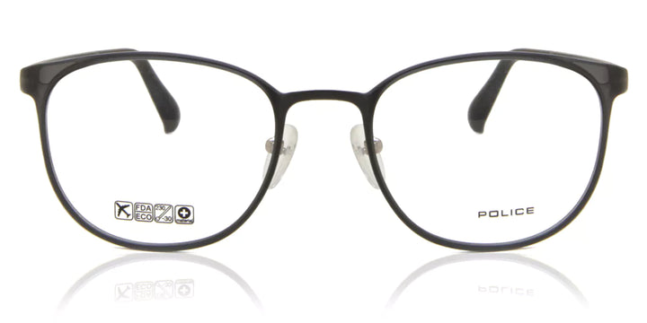The Police Sharp Look 4 VPL249 is a stylish full-rim frame featuring a modern, roundish-square shape in matte grey plastic.